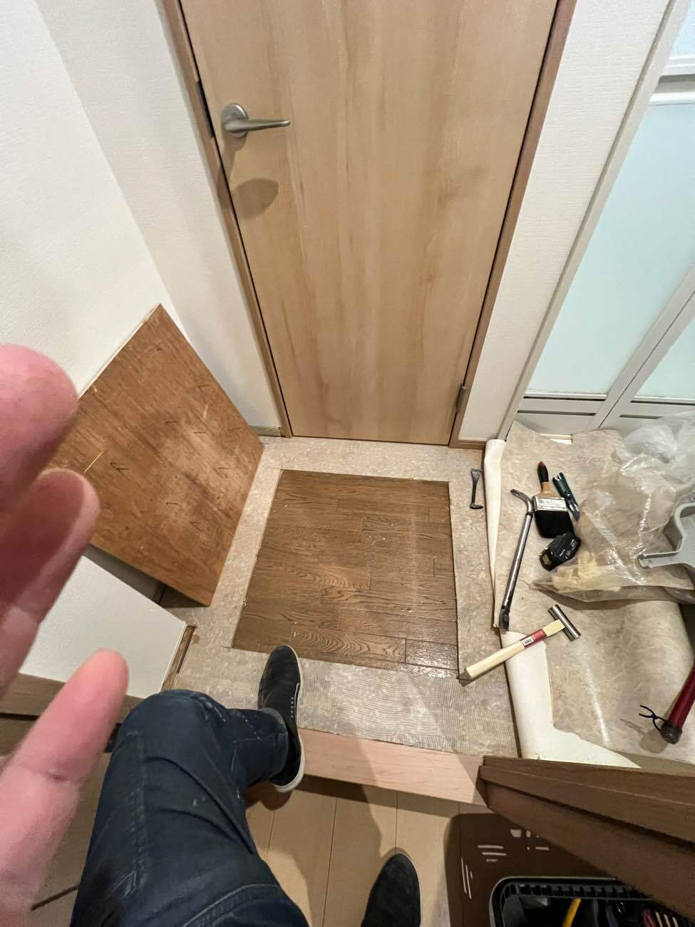 しかし、矢田建設では**「漏水修理」から「床材の復旧」、そして最後の「内装CF(クッションフロア)仕上げ」まで、すべて私(代表)が一人で行います。**