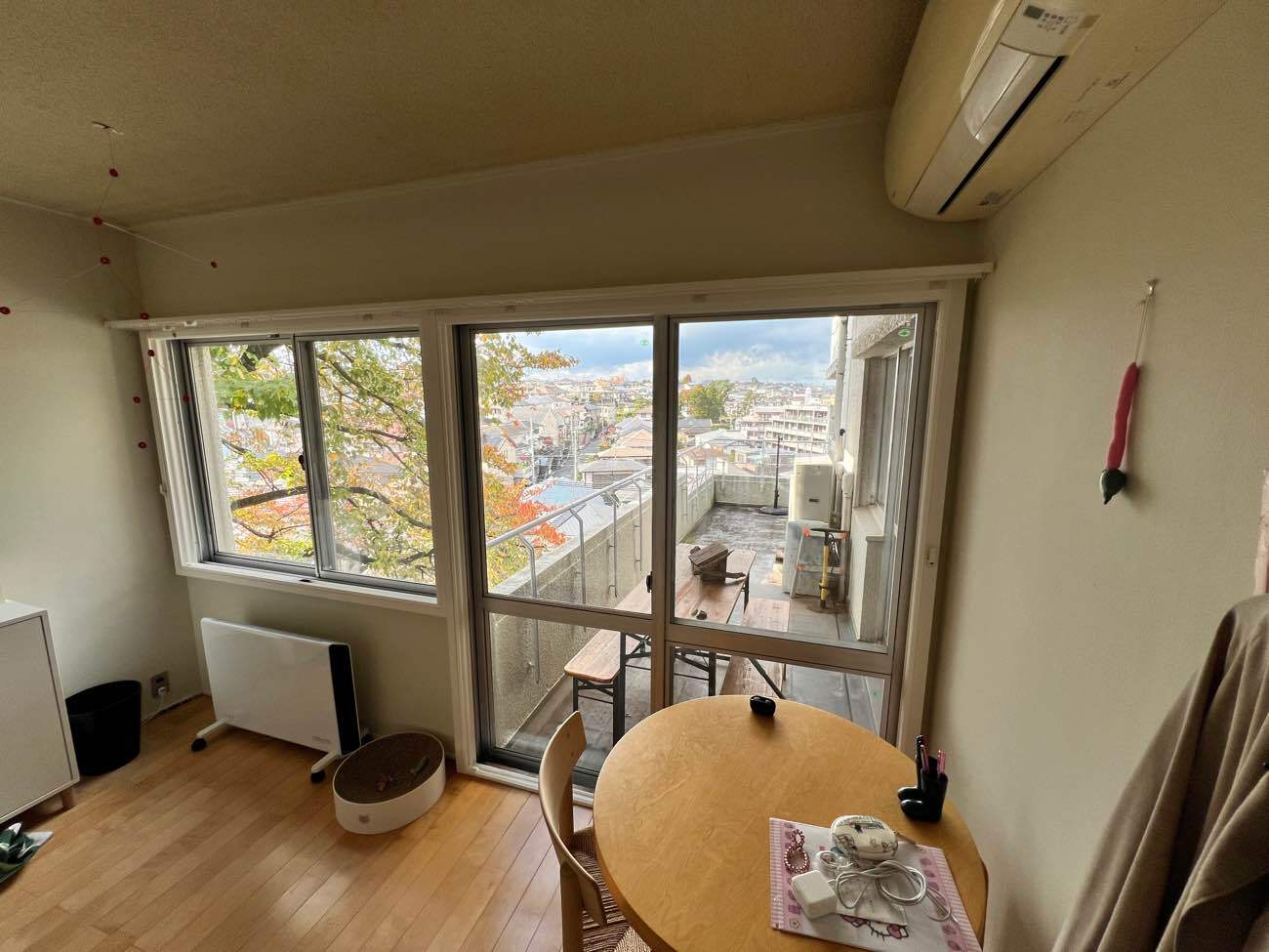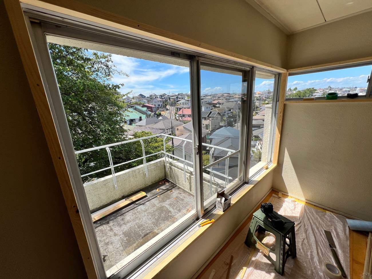 横浜市青葉区のマンションにて、断熱・防音のための内窓(二重サッシ)設置工事と、リビング・キッチンの内装リフォームを行いました。