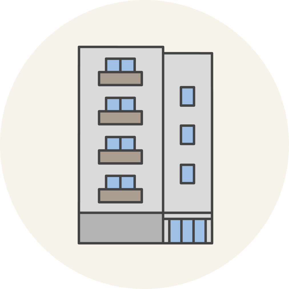 壁式構造は、壁、床、天井が6面で1つの空間とする構造となります。分かりやすく例えると、6面ある箱が重なっていくイメージです。
